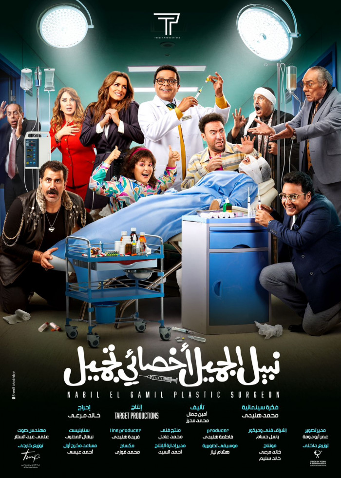 فريق تمثيل فيلم نبيل الجميل أخصائى تجميل : محمد هنيدي ونور اللبنانية ومحمد سلام ومحمد ثروت